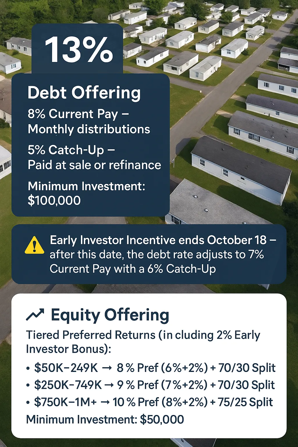 ⚠️ Early Investor Incentive ends November 7th — after this date, the debt rate adjusts to 7% Current Pay with a 6% Catch-Up